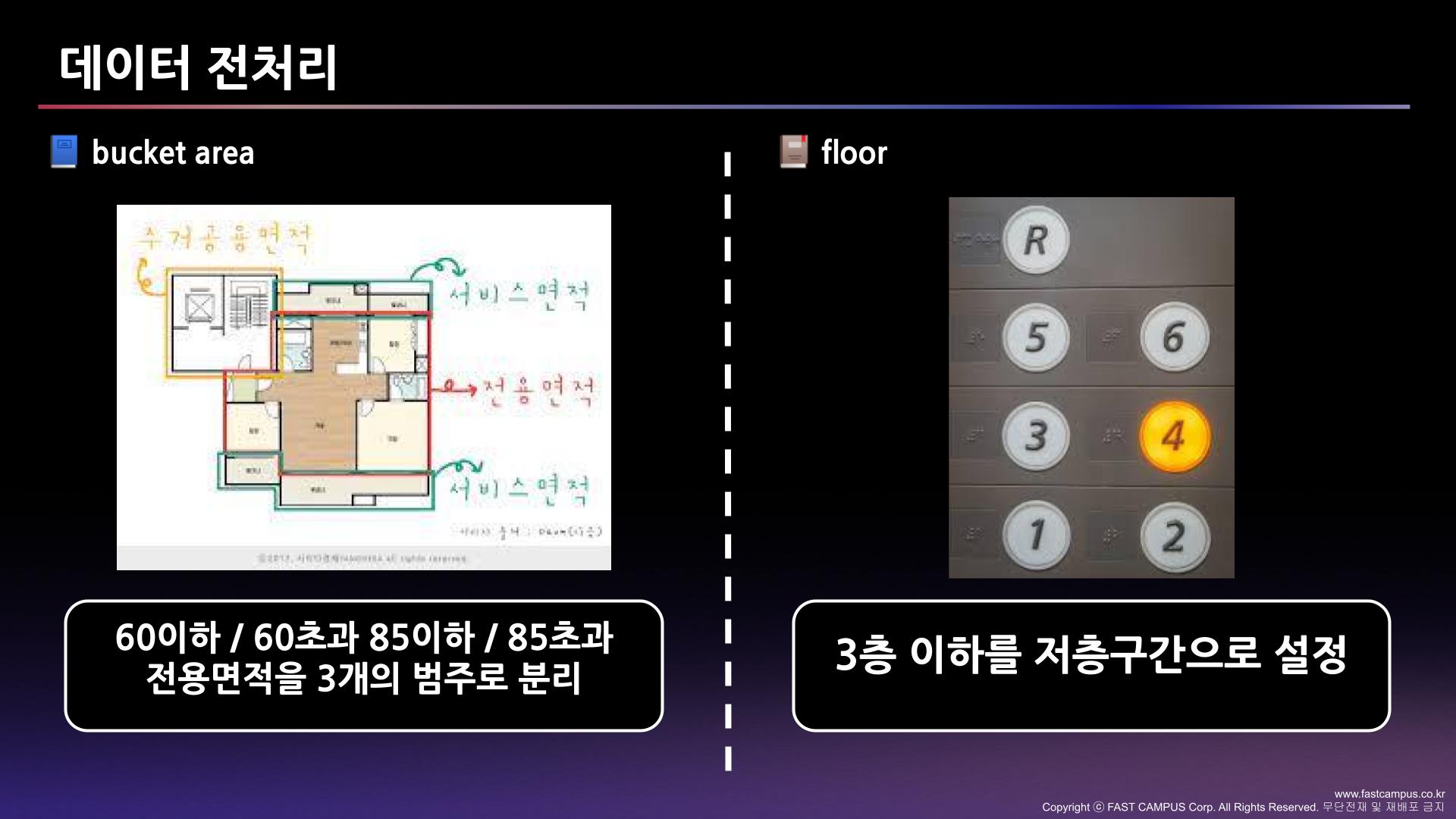 외부 데이터 크롤링 직방과 네이버에서 크롤링을 통해 아파트들의 방과 화장실 개수를 가지고 전용 공간 개수, 주차장 개수 등을 채웠다. 이를 찾은 이유는 같은 아파트에서 평수가 5평 정도 차이나고 화장실과 방 개수가 1~2개 정도 추가되면 매매가가 평균 5000만원 정도 차이가 남을 확인했기 때문이다.