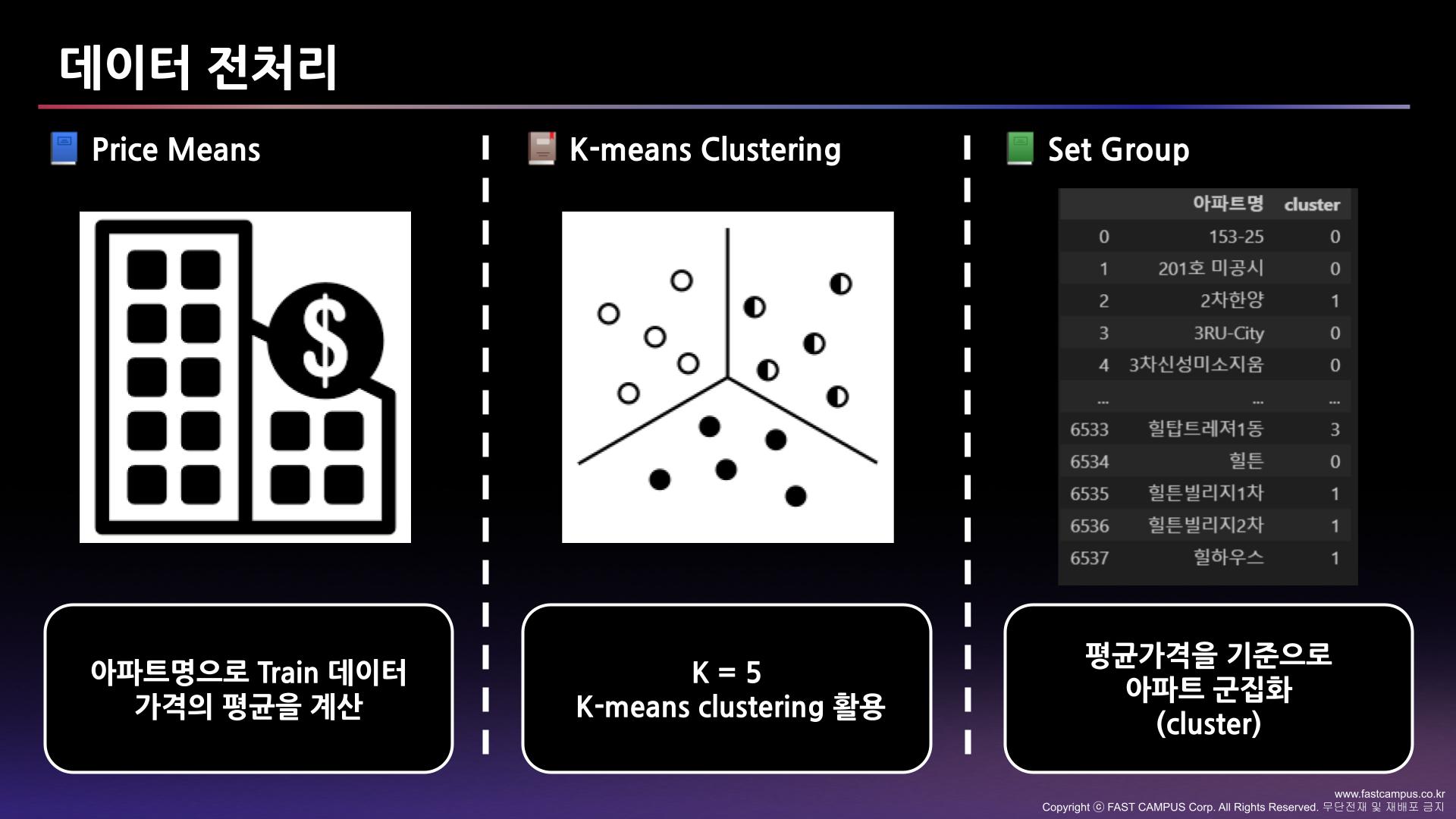 평균 값 분류는 78개이며 0~78로 구성되었고, 한 분류당 평균 300개의 아파트로 분류하였다. 실제 분류한 값은 [15000,19000 ~ 11100000,1200000] 와 같으며 15000 이하 = 0, 15000 이상 19000 미만 = 1 과 같은 방식으로 분류하였다.