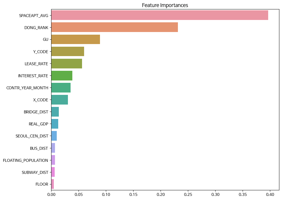 하지만 모델의 성능이 크게 나아지지 않아서 외부에서 데이터를 가져와서 결측치가 많은 변수를 대신 하거나 보완하여 활용할 수 있는 데이터를 찾아서 채우고 향후 학습을 시켰다.[위도, 경도 좌표 Geopy를 활용하여 전체 주소명을 제작하여 채우기 등]