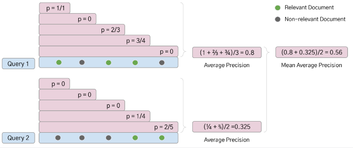 - 질의 N개에 대한 Average Precision의 평균 값